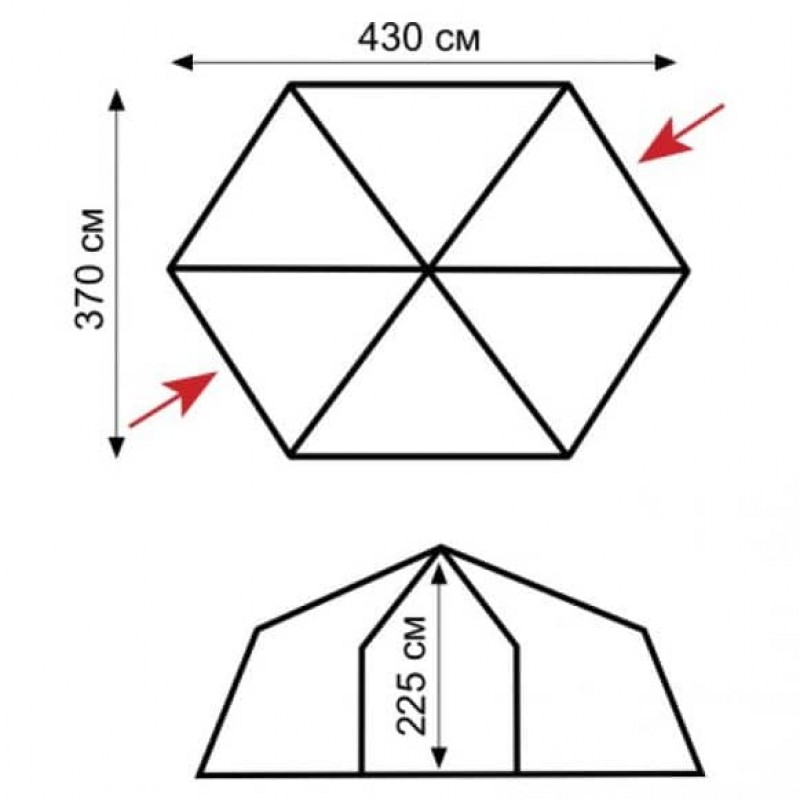 Розмір шатра 3.7 метри на 4.3, висота - 2.25 метри, що дозволяє стояти високій дорослій людині в повний зріст не пригинаючись.