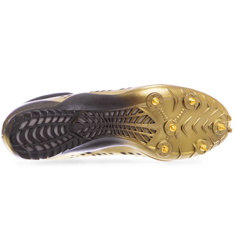 Верх шипування комбінований – для його виготовлення використовуються полівінілхлорид (поліуретан) та поліестер вищої якості. Це дає взуттю пристойний запас міцності та зносостійкості, а також легкість, що важливо для комфортного бігу. Підошва виготовлена з високоякісної гуми (RB), що має пружність, завдяки якій крок атлета стає пружним і легким. У передній частині підошви закріплені металеві шипи, що забезпечують зчеплення з поверхнею, а на ногах фіксуються за допомогою традиційних шнурків.