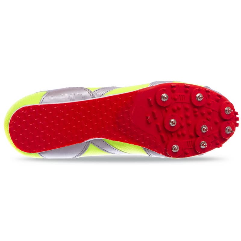 Верх шипування комбінований – для його виготовлення використовуються полівінілхлорид (поліуретан) та поліестер вищої якості. Це дає взуттю пристойний запас міцності та зносостійкості, а також легкість, що важливо для комфортного бігу. Підошва виготовлена з високоякісної гуми (RB), що має пружність, завдяки якій крок атлета стає пружним і легким. У передній частині підошви закріплені металеві шипи, що забезпечують зчеплення з поверхнею, а на ногах фіксуються за допомогою традиційних шнурків.