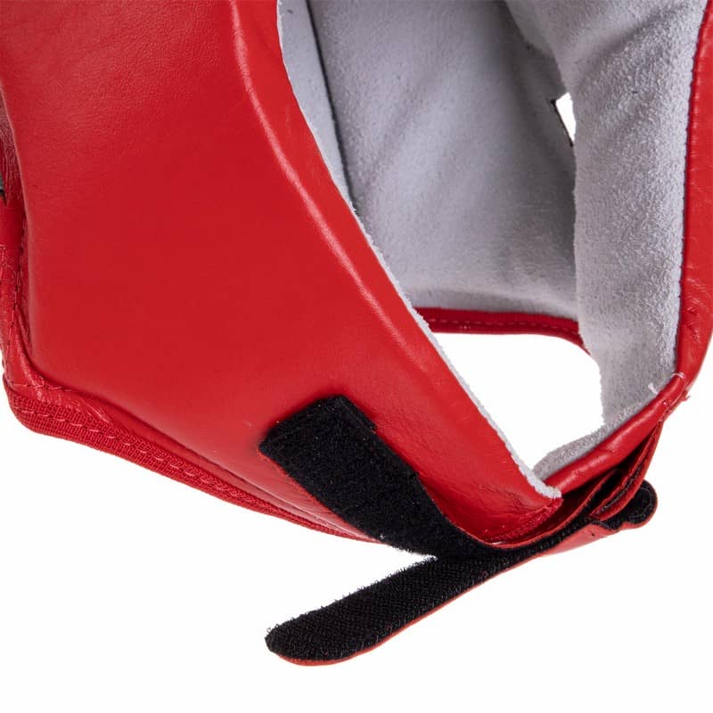 Зовнішня оболонка шолома виготовлена з високоякісної шкіри, стійкої до утворення тріщин і швидкого зносу. Усередині розташований амортизувальний наповнювач, завдяки якому шолом ефективно гасить удари та знижує ризик травм. Конструкція має щільну посадку, надійно фіксує і захищає лоб, скроні та вуха. Захисні накладки з боків захищають вушні раковини, не впливаючи на слух спортсмена. М'яка підкладка допомагає утримувати шолом на місці та запобігає його зміщенню під час бою. Для фіксації використовуються ремінці на липучках, за допомогою яких екіпіровку можна підігнати за розміром.