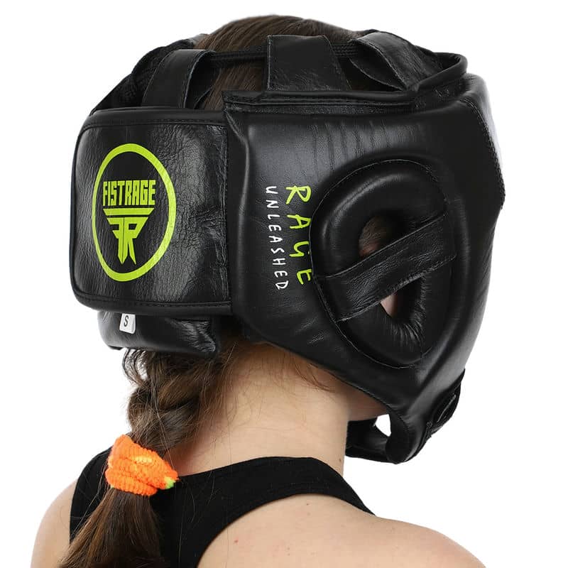 Шолом боксерський відкритий шкіряний Fistrage L, чорний-зелений, код: VL-8497_LG