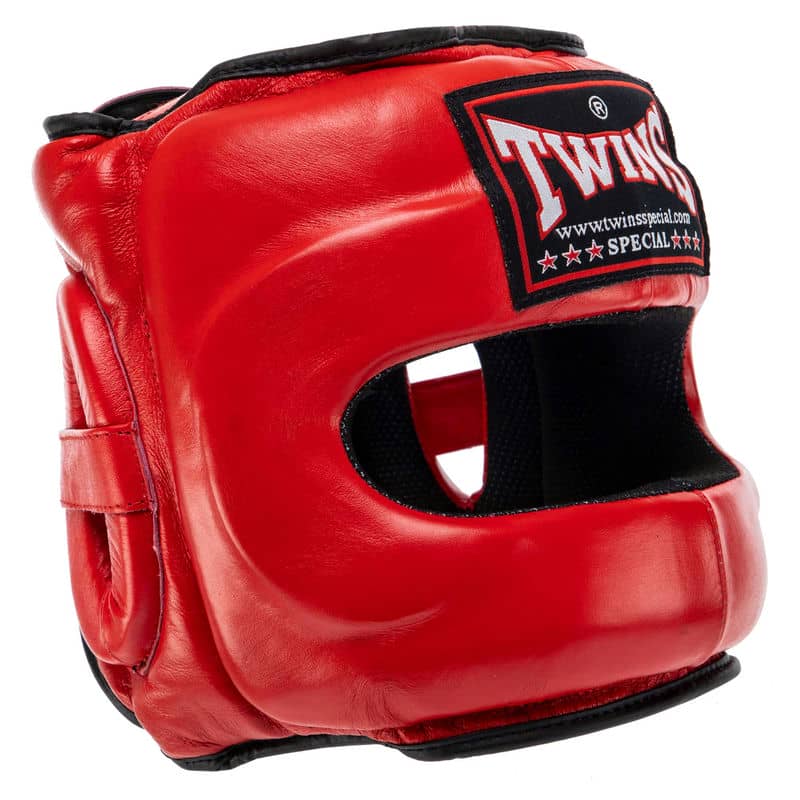 Шолом боксерський з бампером шкіряний Twins Steel Frame M, червоний, код: BO-0573_MR