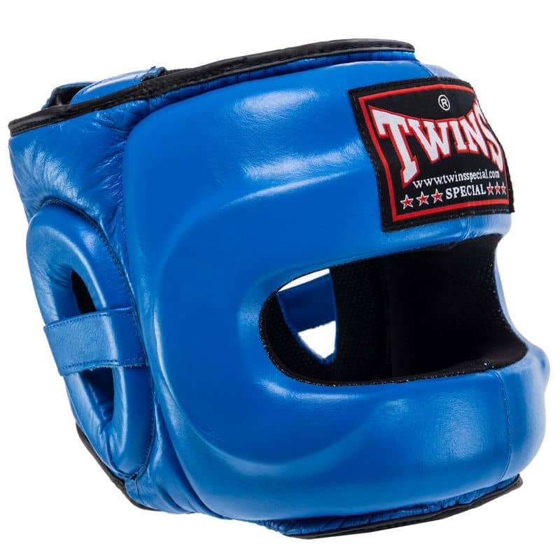 Шолом боксерський з бампером шкіряний Twins Steel Frame M, синій, код: BO-0573_MBL