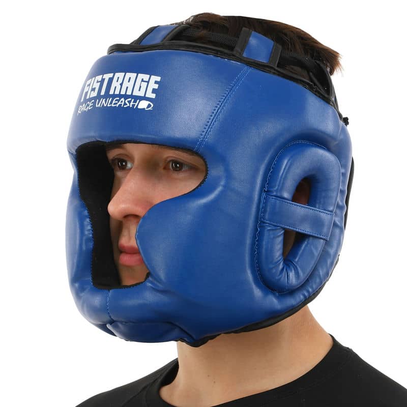 Шолом боксерський з повним захистом шкіряний Fistrage L, синій, код: VL-4157_LBL