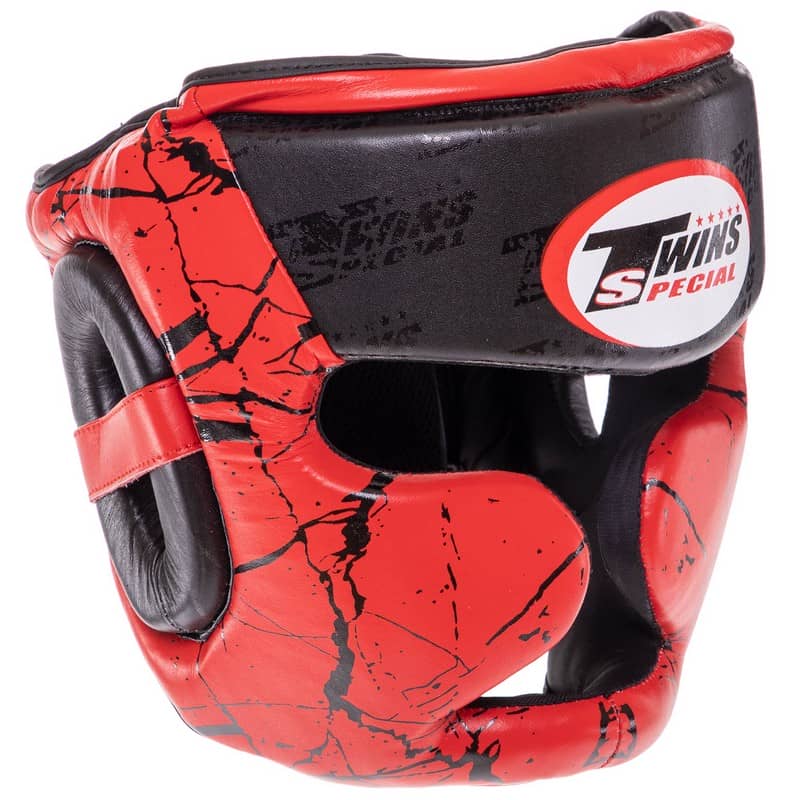 Шолом боксерський з повним захистом шкіряний Twins L, чорний-червоний, код: BO-0774_LR