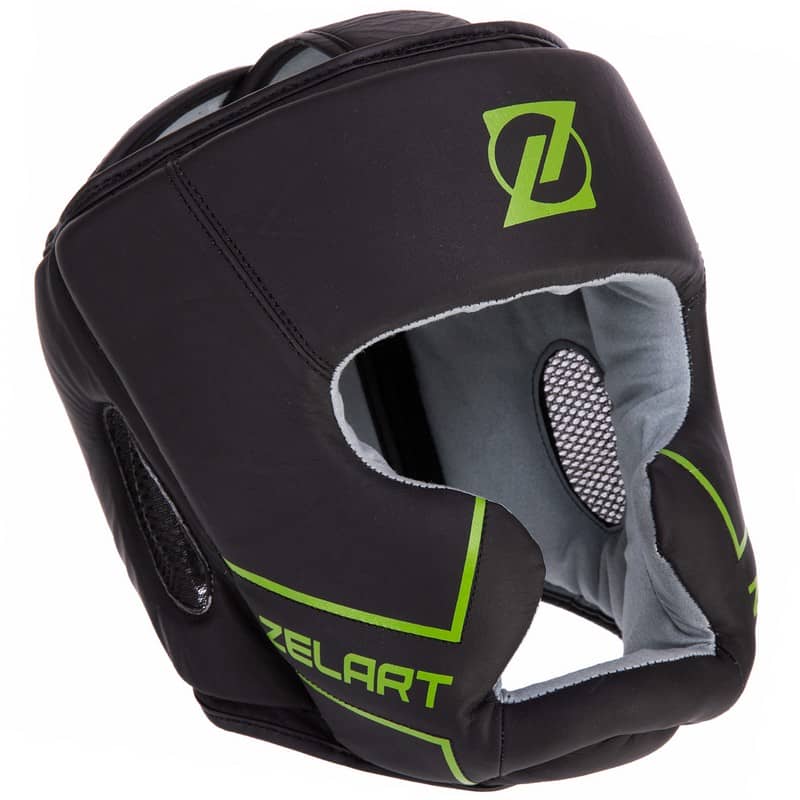 Шолом боксерський з повним захистом шкіряний Zelart M чорний-салатовий, код: VL-3151_MLG