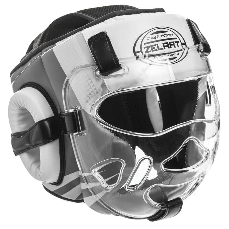 Шолом для єдиноборств з прозорою маскою Zelart XL, чорний-білий, код: BO-1360_XLW-S52