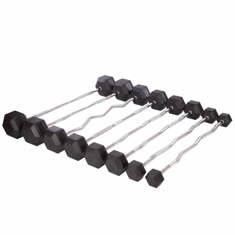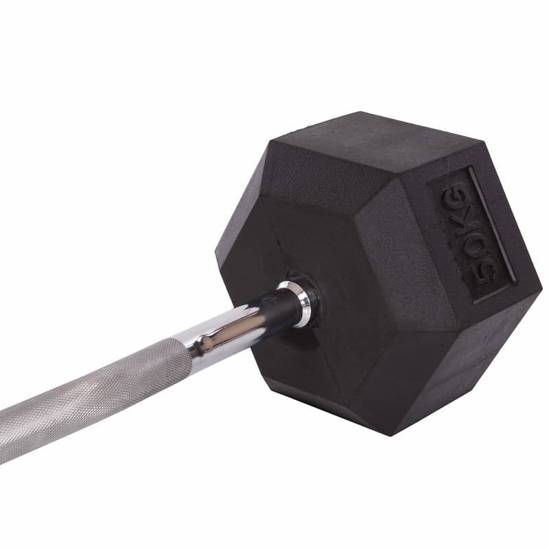 Фіксована вигнута штанга Rubber Hexagon Barbell TA-6231-50 це не просто інструмент для тренувань, а справжня знахідка для любителів якісних та зручних спортивних снарядів. На відміну від класичних розбірних моделей, вона не вимагає складання, що заощаджує час і робить заняття зручнішими. Компактна довжина 95 см дозволяє легко маневрувати снарядом навіть в обмеженому просторі, а завдяки фіксованій вазі атлет може повністю зосередитися на техніці виконання вправ без необхідності балансування снаряда.