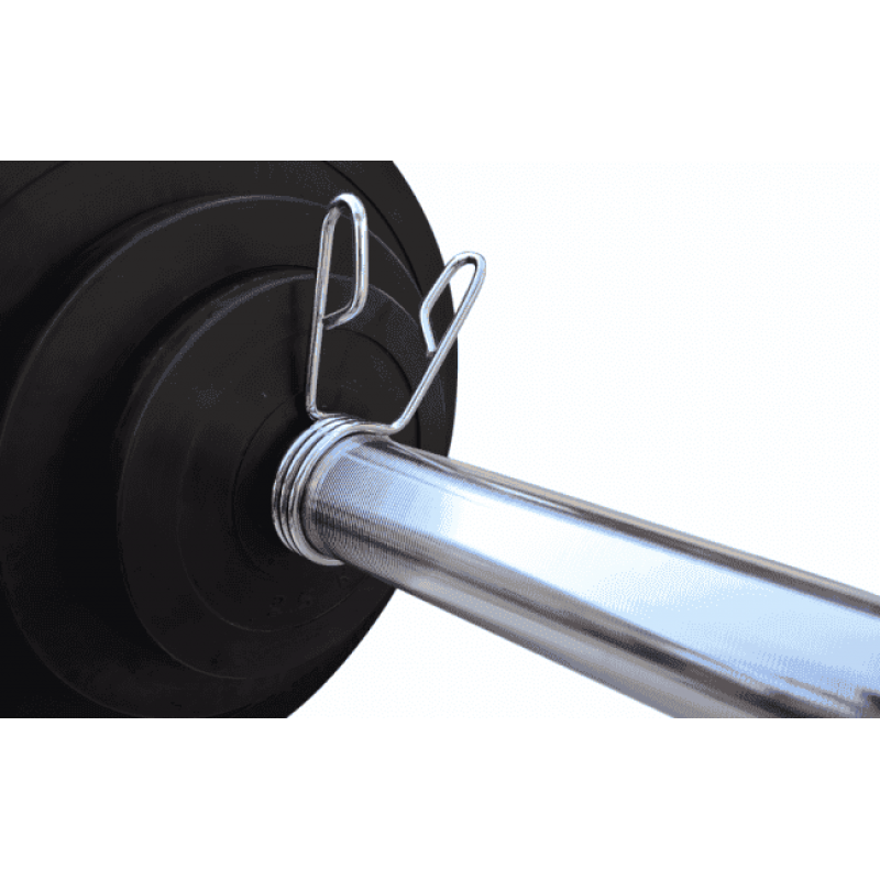 Гриф для штанги, як і затискачі, повністю виконані зі сталі та покриті шаром хрому. Насічка на рукояті грифа перешкоджає ковзанню рук і чудово сидить у руці. Така штанга довгий час будуть тішити вас своїм виглядом та якістю!