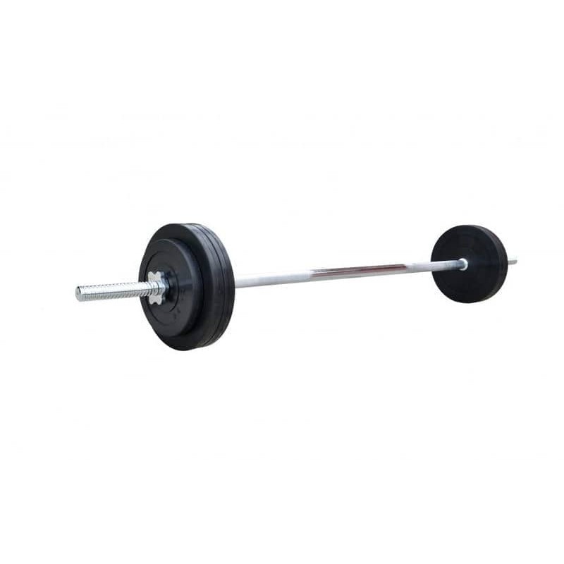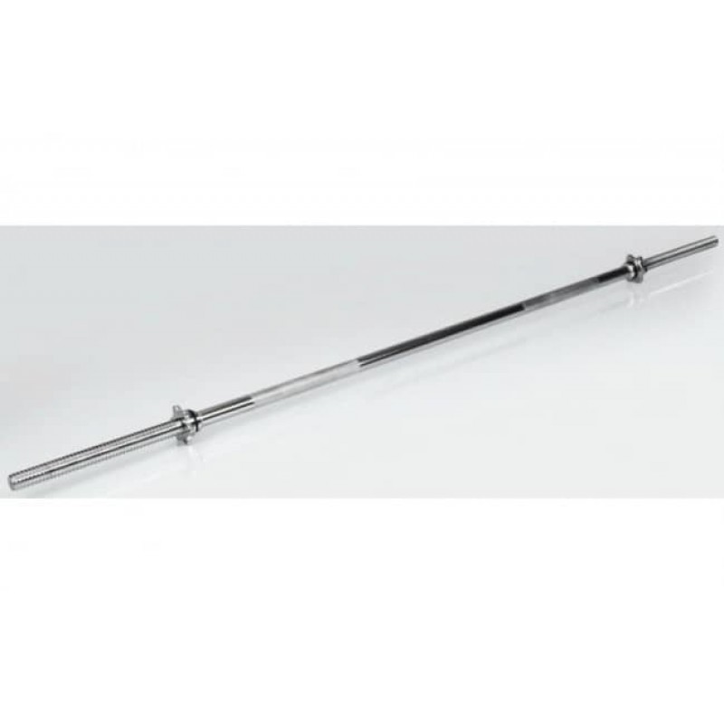 Гриф, як і затискні гайки, повністю виконані зі сталі та покриті шаром хрому. Насічка на рукояті грифа перешкоджає ковзанню рук і чудово сидить у руці. Така штанга довгий час будуть тішити вас своїм виглядом та якістю!
