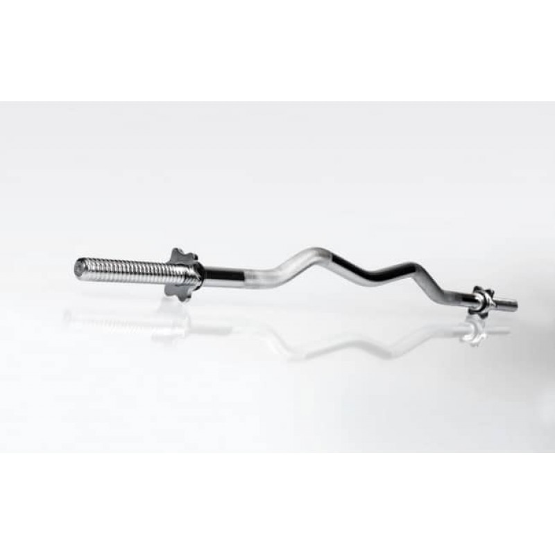 Гриф, як і затискні гайки, повністю виконані зі сталі та покриті шаром хрому. Насічка на рукояті грифа перешкоджає ковзанню рук і чудово сидить у руці. Така штанга довгий час будуть тішити вас своїм виглядом та якістю!