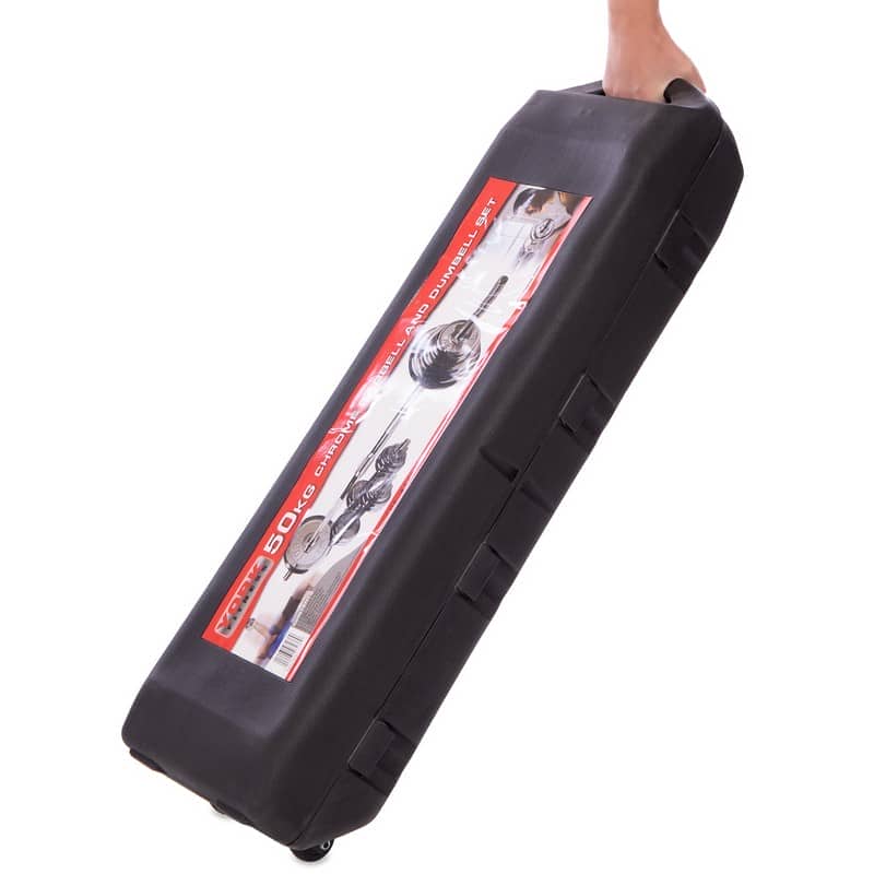 Кожну деталь набору зручно зберігати в жорсткому пластиковому кейсі, що полегшує транспортування та зберігання. Всередині кейсу — індивідуальні гнізда, які запобігають ковзанню дисків і їх пошкодженню. А подовжувач грифа дозволяє швидко трансформувати гантель у повноцінну штангу — переходьте на новий рівень зусиль без зайвих клопотів.