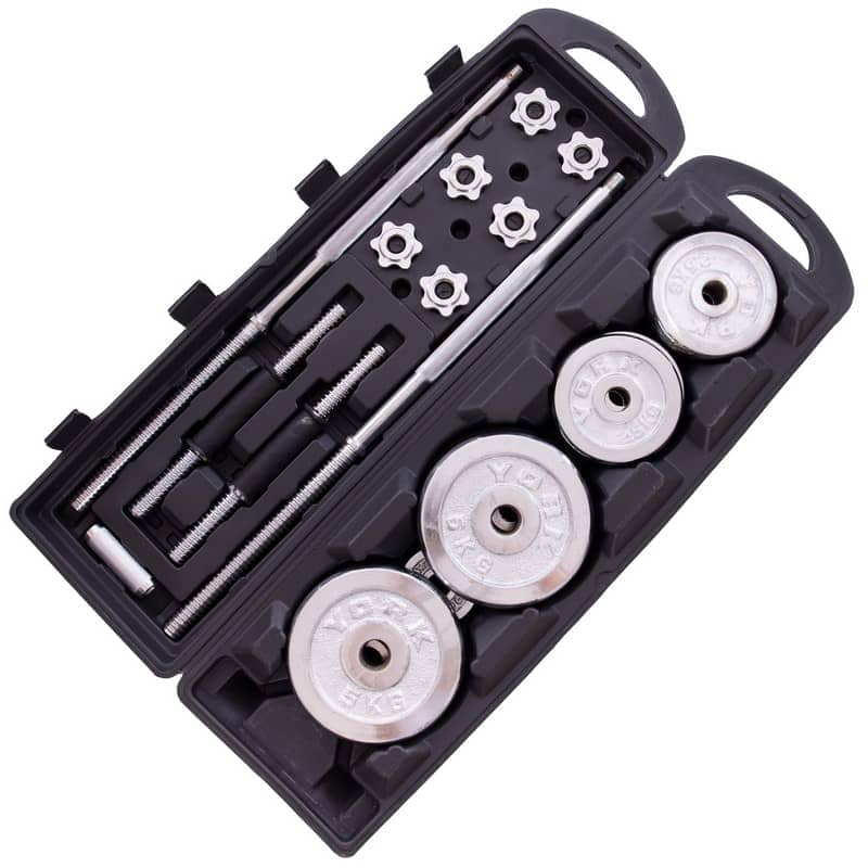 Комплект гантелей і штанги 3-в-1 YORK TA-1437-50CH створений для тих, хто прагне універсальності в тренуваннях і максимального ефекту, не виходячи з квартири. Цей набір — ідеальний вибір для початківців, підлітків, а також для всіх, хто робить перші кроки у силовій підготовці. Завдяки можливості трансформації та плавному регулюванню ваги, він особливо зручний як стартовий набір для безпечного прогресу. А для досвідчених користувачів — це можливість відточити техніку та урізноманітнити тренування, не покидаючи комфортного простору.