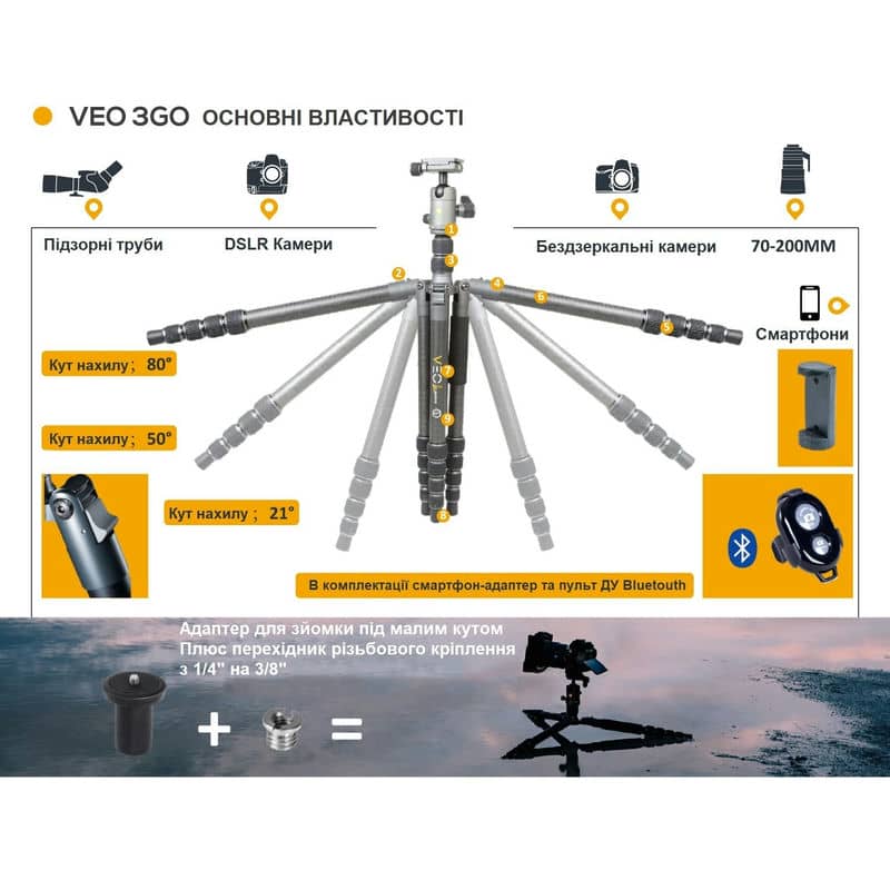 Історія штативів Vanguard Veo починалася з думок про подорожі і привела до створення найбільш легких, компактних і мультифункціональних штативів для тих, чиї захоплення пов'язані з подорожами. На сьогоднішній день штативи VEO 3GO найбільш функціональні серед компактних, і найбільш компактні серед мультифункціональних штативів виробника. Vanguard VEO 3GO - ідеальні штативи для сучасних активних користувачів.