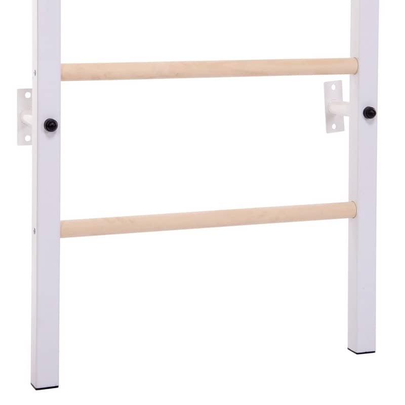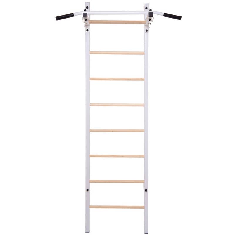 Шведська стінка виконана з комбінації металу і дерева: стійки виготовлені з металу, а поперечини - дерев'яні. Для виготовлення застосовується екологічно чиста деревина, відшліфована до максимальної гладкості. Дитячим рукам не будуть страшні скалки. Максимальне навантаження, яке здатна витримати конструкція, становить 120 кг.