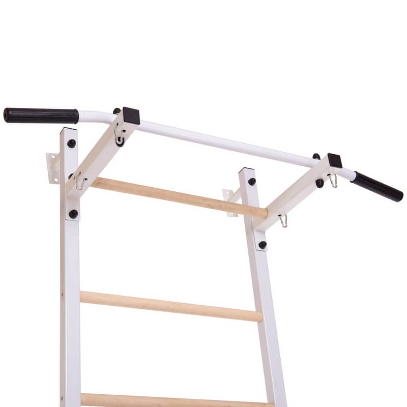 Крім самих сходів, в комплект постачання також входить турнік, канат для лазіння з кріпленням, гімнастичні кільця і канатні сходи. Набір кріплень для установки шведської стінки також входить в комплект.