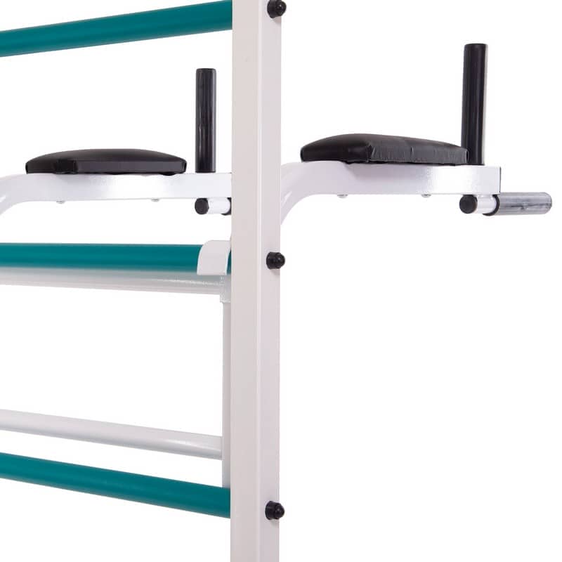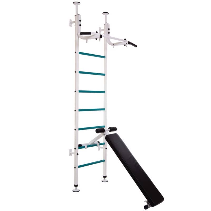 Шведська стінка Стійка SP-Planeta L-4005 укомплектована додатковим обладнанням, яке дає змогу виконувати функціональні тренування на різні м'язові групи та весело проводити час. На цьому універсальному тренажері можуть займатися всі члени сім'ї, зокрема й діти. Він не потребує великої площі для встановлення. Гімнастичні сходи мають поперечини з пластиковим обплетенням, що дає змогу збільшити зчеплення з долонями під час виконання вправ. Турнік кріпиться до стійок і має ПВХ-ручки в місцях захоплення. Бруси одночасно виконують функцію підставки для штанги, що дає змогу використовувати додаткове обладнання спільно зі шведською стінкою. Складна лава підійде для жиму лежачи і вправ на прес, кут нахилу можна регулювати. У лаві передбачені поліуретанові валики для ніг. Шведська стінка комплектується набором дитячого навісного обладнання, яке містить мотузкові сходи, канат і гімнастичні кільця.