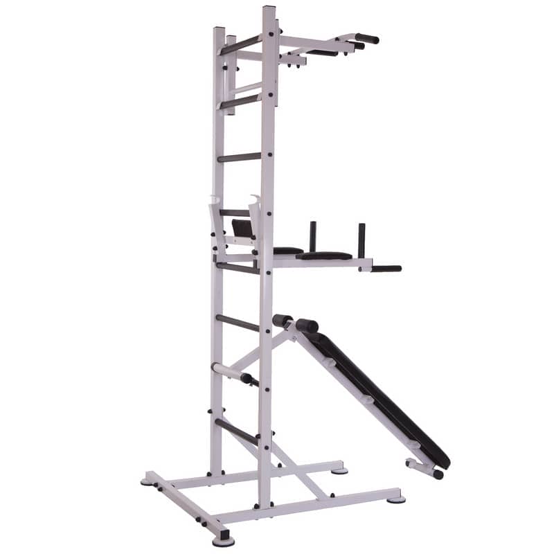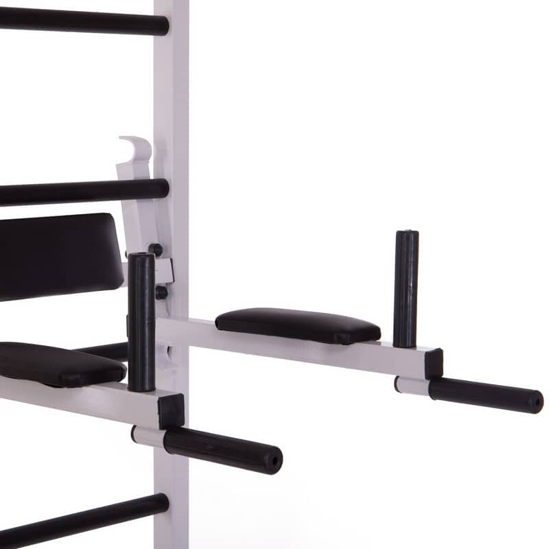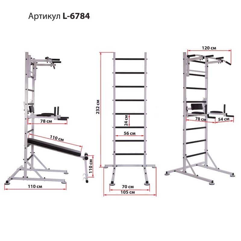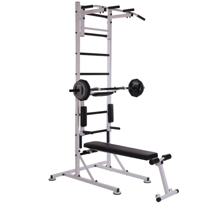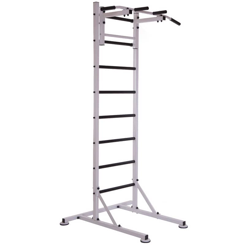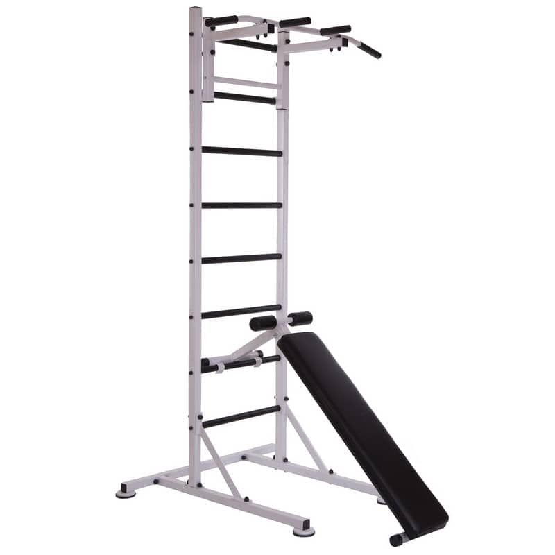 Шведська стінка з комплектом навісного обладнання призначена для комплексних тренувань всього тіла і дозволяє користувачам вагою до 120 кг займатися зі штангою вагою до 90 кг. Знімні турнік і бруси можуть використовуватися для вправ на прокачування преса, а в перевернутому положенні служать підставкою під штангу. Зміцнити м'язи кора дозволяє лава для преса, на якій також можна виконувати жим штанги лежачи.