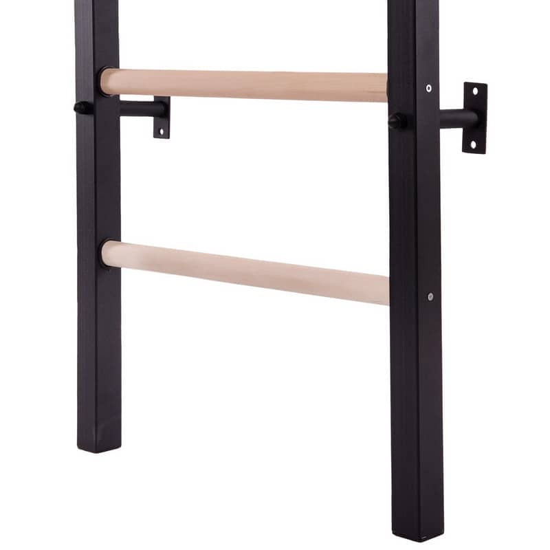 Шведська стінка СТ Power Wood - це універсальне обладнання, яке можна використовувати як у домашньому тренажерному залі, так і в шкільному або комерційному спортзалі. Для виготовлення основи використовується високоякісна металева труба збільшеного перетину 50х50 мм. Товщина металу становить 2 мм. Це дає змогу конструкції витримувати користувачів із вагою тіла до 120 кг. Конструкція має стаціонарний турнік, який не знімається і не регулюється за висотою. Перекладина виготовлена з дерева - це екологічно безпечний матеріал, який має великий запас міцності. Овальна форма перекладин дає змогу їм надійно триматися в посадкових місцях і не перекручуватися під впливом великого навантаження. Стійки стінки покриті порошковою фарбою для захисту від корозії.