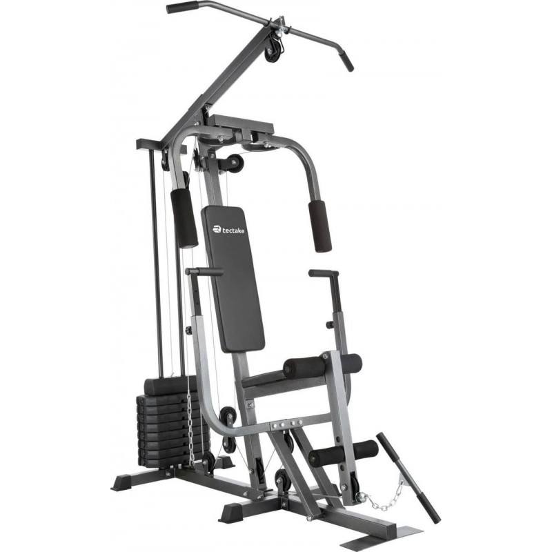Щоб підтримувати форму, потрібно багато працювати. Мультитренажерний зал від tectake перетворює тренування в задоволення. Численні вправи на жим і перетягування канату, а також регульовані обтяження ідеально підходять для опрацювання м'язів тулуба, рук і ніг. Масивна конструкція, виготовлена з міцної трубчастої рами зі сталевими тросами з покриттям, гарантує максимальну безпеку та стабільність під час кожної вправи - у положенні стоячи, щадному для суглобів, і в зручному положенні сидячи. Завдяки багатьом способам тренування та компактним розмірам цей багатофункціональний тренажерний зал для тренування всього тіла також чудово підходить для невеликих квартир або підвалів. Підтримуйте фізичну форму з мультитренажерним залом від tectake.