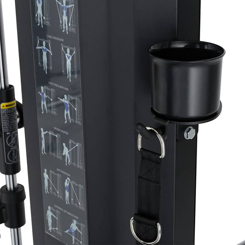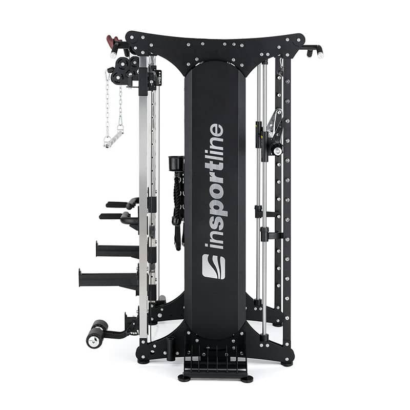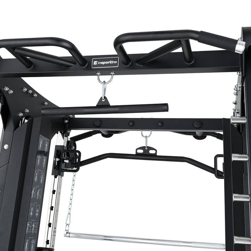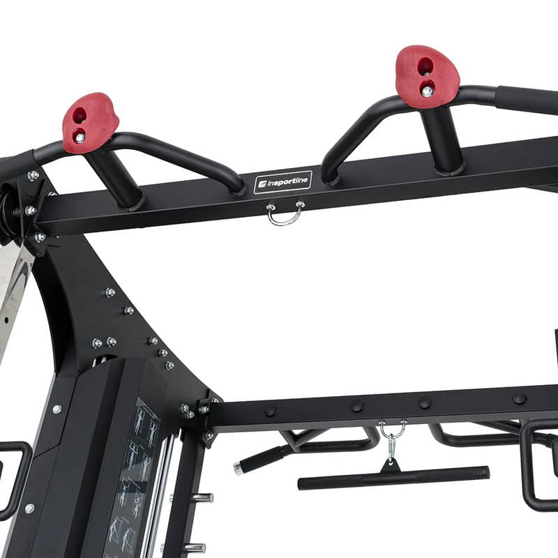 Комерційний профіль стійки завершується багатофункціональною трапецією з обох боків стійки, місцем для зберігання котушок та адаптерів, а також червоними ручками для лазіння. Жоден сучасний тренажерний зал не може обійтися без кабельної стійки inSPORTline CC650 Double!