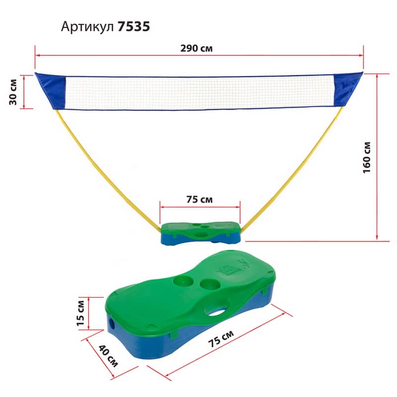 Сітка для бадмінтону портативна PlayGame, код: 7535-S52