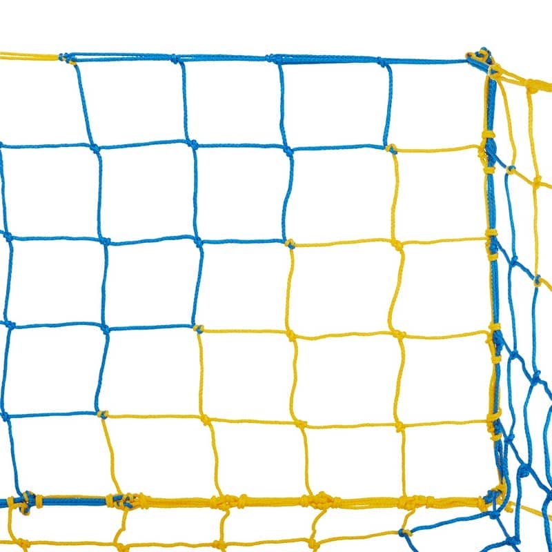 Висота сітки - 2.05 м, ширина - 3.05 м. Виріб має однакову верхню і нижню глибину - 0.6 м. Сітку можна використовувати з воротами стандартного розміру, вона легко кріпиться і зберігає правильну форму в процесі експлуатації. З 5 мм плетеного з наповнювачем шнура сітка виготовляється вузловим методом. Міцний поліпропілен з добавками для підвищення стійкості до УФ-випромінювання, підвищеної вологості та перепадів температур гарантує довговічність і зносостійкість сітки.