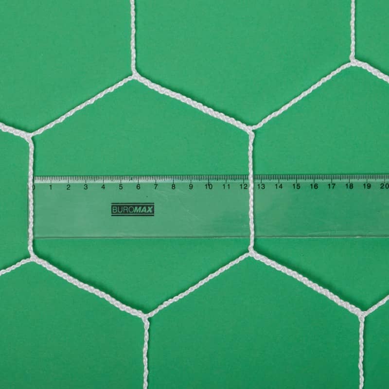 Розмір комірки — 7,5 x 7,5 см забезпечує оптимальне співвідношення між візуальною прозорістю та здатністю вловлювати м’яч, надаючи воротам професійного вигляду.