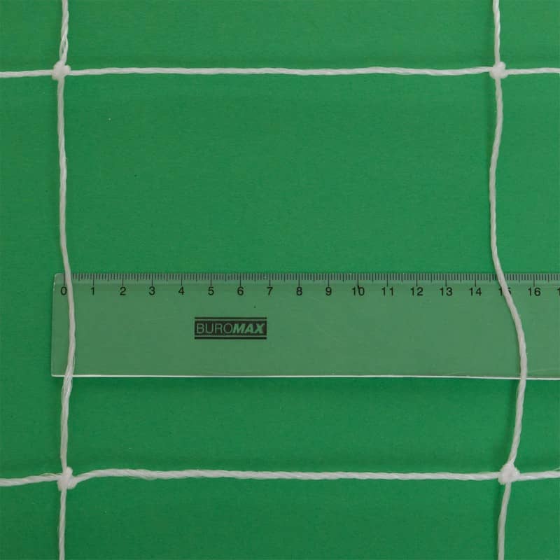 Розмір комірки — 14×14 см. Оптимальне співвідношення між проникністю та стійкістю дозволяє зберегти баланс між легкістю та міцністю. Така структура не заважає огляду, але впевнено «ловить» м’ячі різного діаметра.