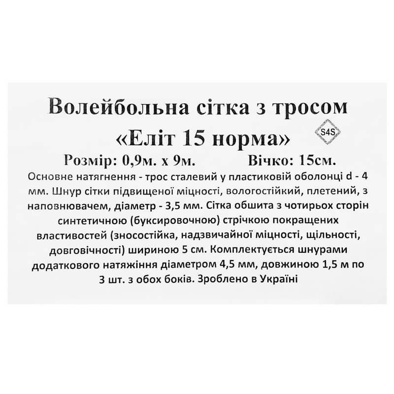 Сітка для волейболу PlayGame Еліт 15 норма 9x0,9м чорний-білий, код: SO-9555_BKW