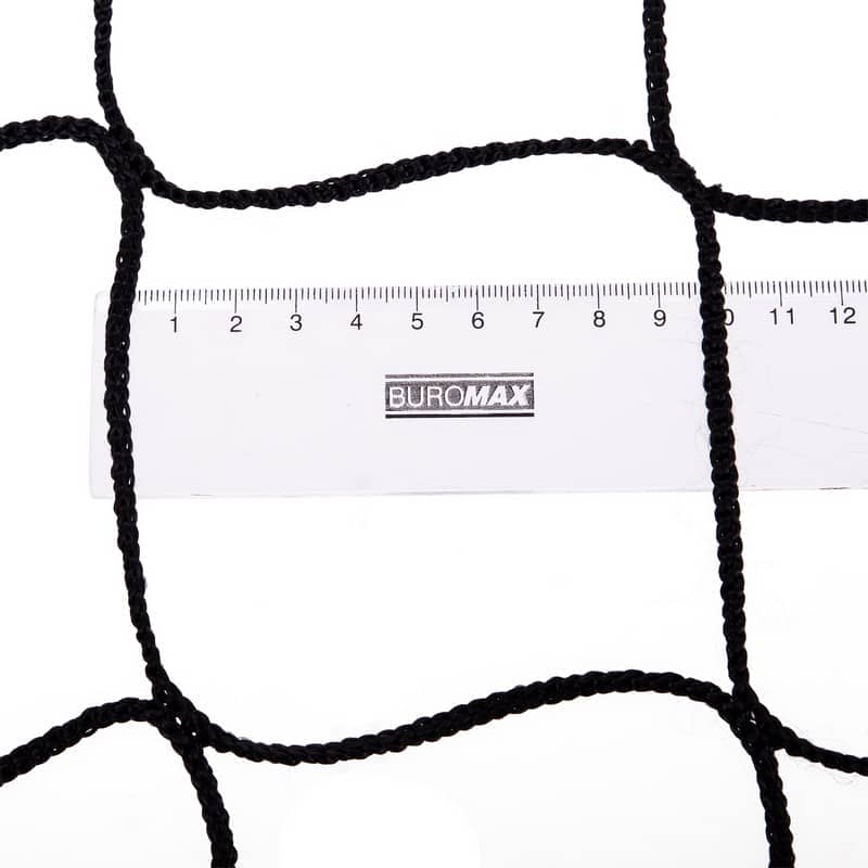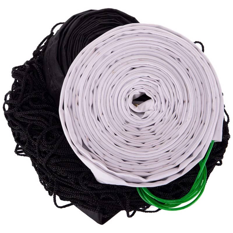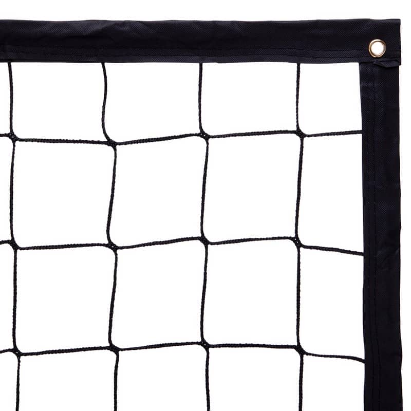 Вона виготовлена безвузловим методом з товстого синтетичного шнура високої міцності. Розмір сітки становить 9,5х1 м, крок комірки - 10 см. По периметру полотно посилено тканинною окантовкою з люверсами з боків і в кутах. Вони призначені для троса і шнурівки, що дозволяють натягнути та закріпити сітку на стійках, а також до них кріпляться спеціальні тримачі для антени. Сітка пофарбована в чорно-білий колір для хорошої видимості майданчика і чіткого розділення. Комплектується зручною сумкою для зберігання і транспортування.