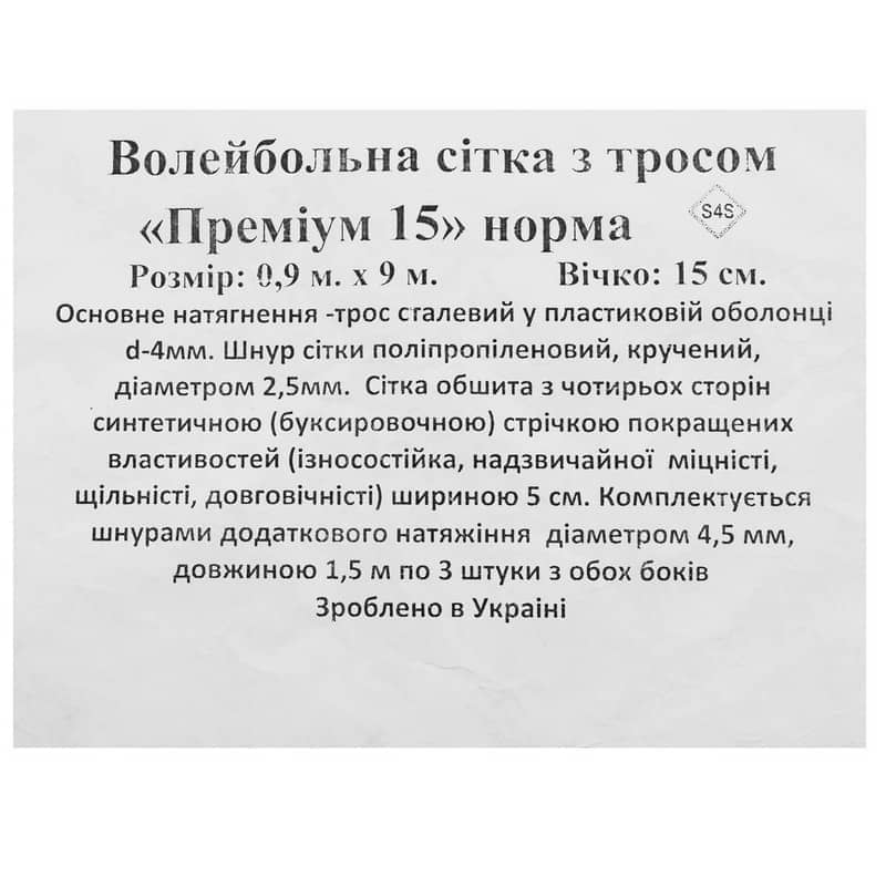 Сітка для волейболу PlayGame Преміум 15 Норма 9x0, 9м чорний-білий, код: SO-9554_BKW