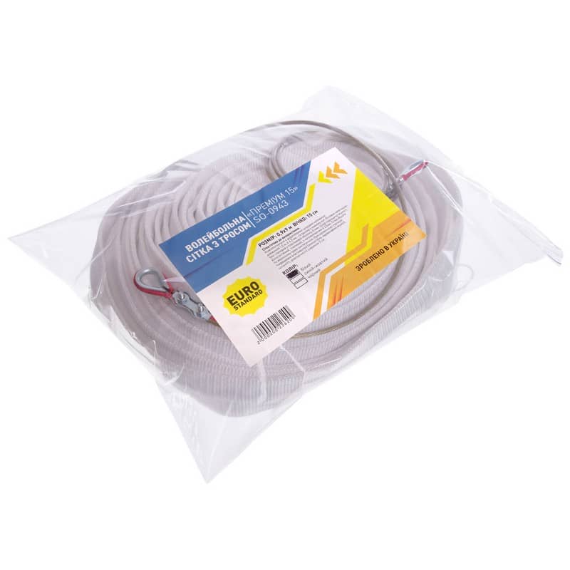 Сітка оснащена металевим тросом, який забезпечує надійне кріплення та натяг сітки. Це робить установку сітки швидкою та простою, а також гарантує стабільність під час гри.
