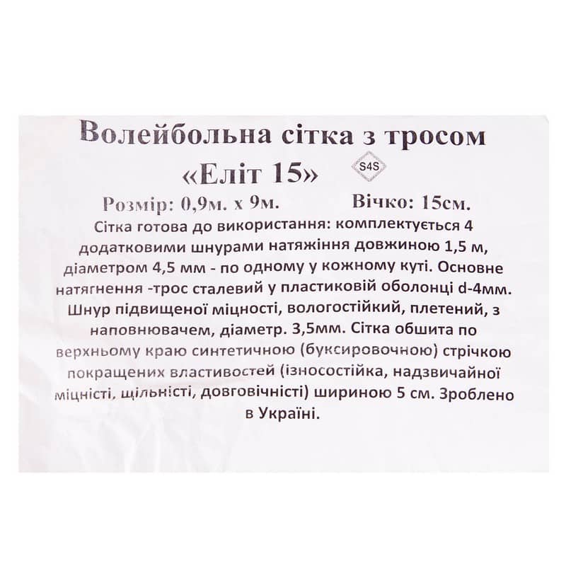 Сітка для волейболу SP-Planeta Еліт15 9000х900 мм, чорний, код: SO-5271_BK