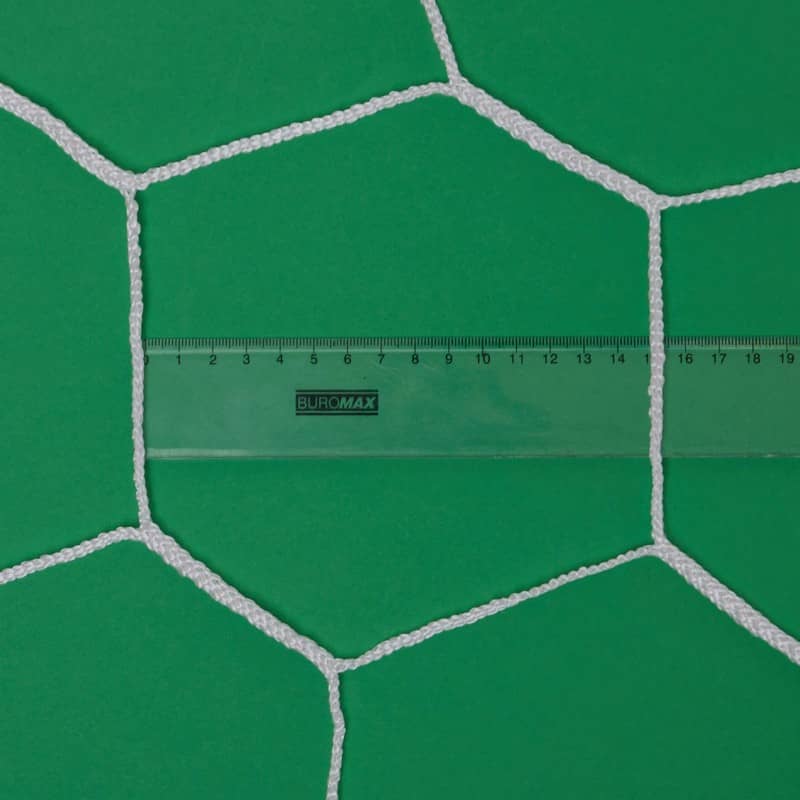 Розмір комірки — 7,5 × 7,5 см. Така геометрія гарантує чітке фіксування м'яча всередині воріт, роблячи кожен забитий гол яскравим моментом будь-якого матчу. Пропорції комірок також сприяють хорошій видимості і візуально підкреслюють охайність сітки на тлі поля.