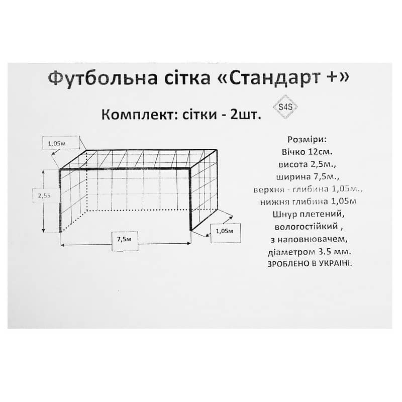 Сітка на ворота футбольні посиленої міцності PlayGame Стандарт плюс 7,5x2,55x1,05м 2шт, жовтий-синій, код: SO-9562_YBL