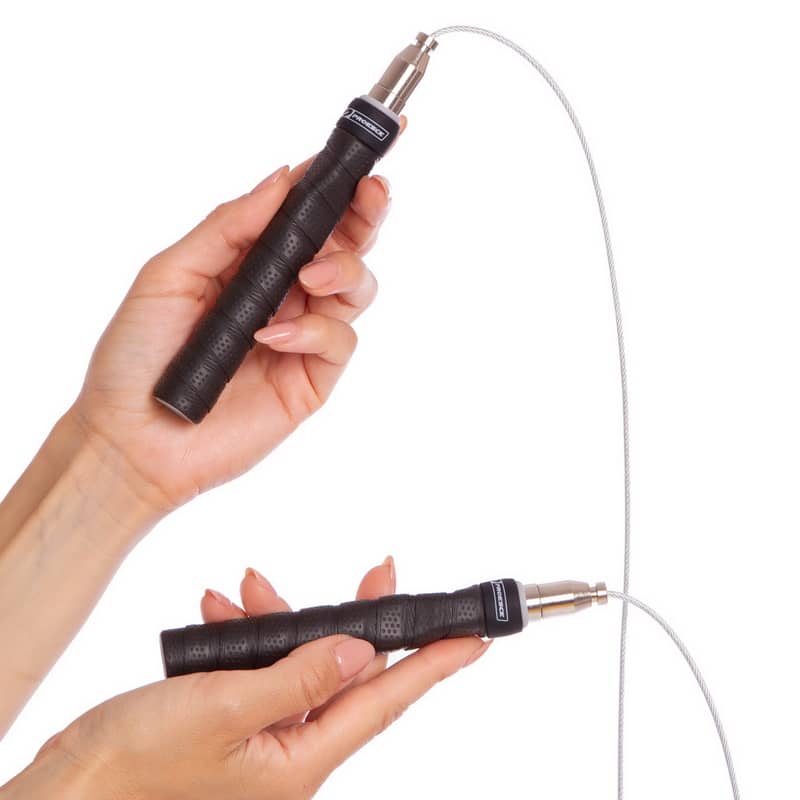 Товщина стального тросу становить лише 2 мм. Невеликий шар силіконового покриття є максимально легким. Тому скакалка легка, дозволяє стрибати з високою швидкістю. За допомогою такого невеликого тренажера можна займатися на вулиці чи у спортивній залі, розвивати витривалість, координацію рухів. Скакалка часто використовується професійними спортсменами для розвитку витривалості та швидкості.