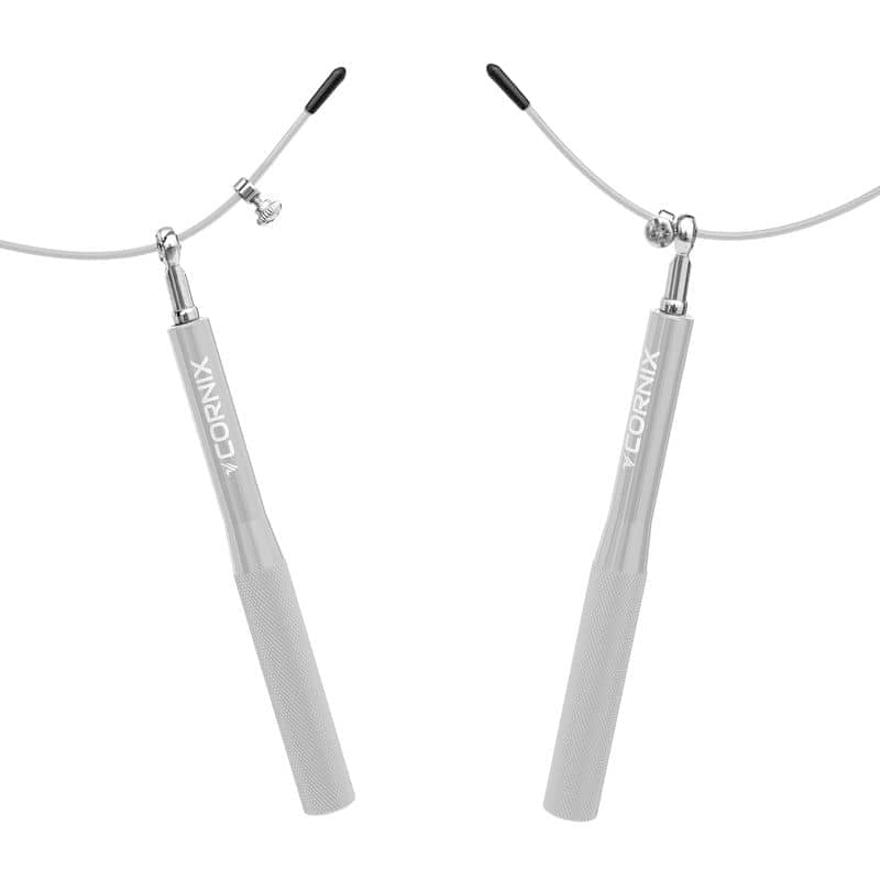 Скакалка від Cornix підійде для вимогливих користувачів, які шукають надійний та комфортний інвентар. Обертова система з підшипниками, яка використовується в цій моделі, забезпечує надзвичайно плавну та швидку роботу скакалки, що, безумовно, покращить результати тренувань. Ручки, виготовлені з алюмінію, міцні та довговічні. Їх ергономічна форма гарантує зручний хват і дозволяє зап'ястям не втомлюватися під час стрибків. Нековзка структура запобігає вислизанню снаряда з рук навіть при інтенсивних тренуваннях. Металевий джгут довжиною 300 см та діаметром 2.5 мм, має вінілову оболонку, а продуманий механізм дозволяє плавно регулювати довжину скакалки протягом декількох десятків секунд!