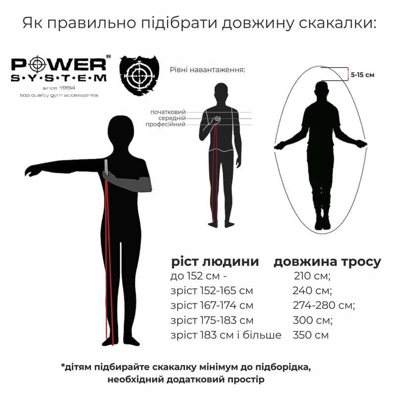 Увага! Кожна скакалка відповідає параметрам, котрі зазначені у характеристиках. Аби відрегулювати довжину скакалки, вкоротіть трос самостійно.