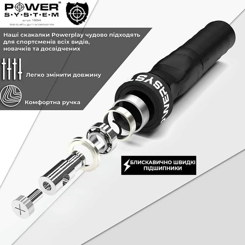 УНІКАЛЬНИЙ ДИЗАЙН - Ергономічна протиковзна ручка з гумовою обмоткою проста у використанні та не виснажує руки, тому ви можете зосередитися на підвищені витривалості та досягненні нового особистого максимуму. На відміну від класичної конструкції, ручки PS-4079 оснащені подвійними підшипниками, які крутяться на 360 градусів для запобігання скручуванню шнурка під час тренування.