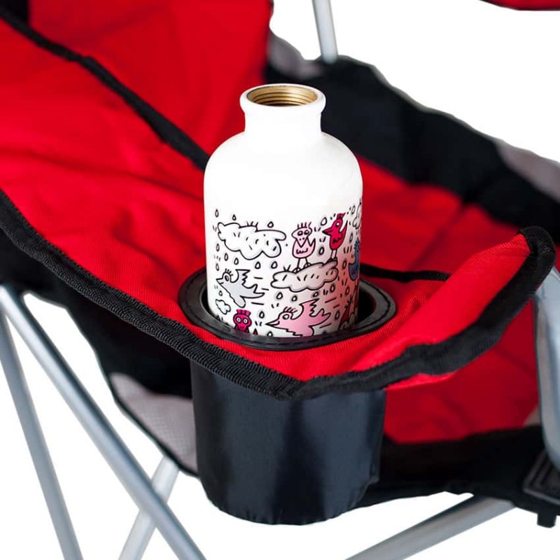 Каркас із сталевих труб не має жорсткої фіксації, що додає крісла м’якості. Конструкція надійна і стійка. Крісло розкладається практично самостійно і не вимагає додаткової фіксації. У складеному вигляді дуже компактно, не займе багато місця, зручно в транспортуванні. У комплект входить чохол з тканини, з плечовим ременем для зручності перенесення.