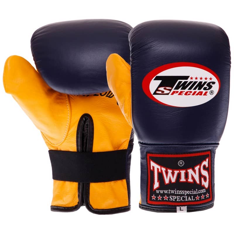 Снарядні рукавички шкіряні Twins M жовтий-темно-синій, код: TBGLA-1F_MYDBL