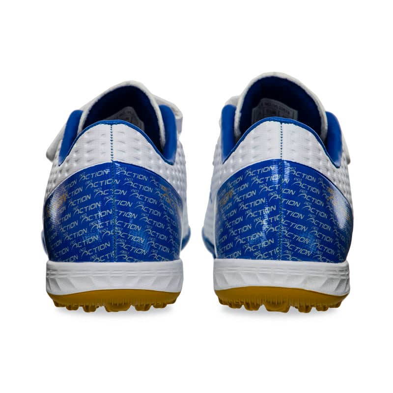 Дитячі сороконіжки від Pro Action виготовлені з високоякісних матеріалів, забезпечуючи комбінацію міцності, гнучкості та довговічності. Верх виконаний з поліуретану (PU), що надає відмінний захист від зовнішніх впливів, зберігаючи при цьому легкість і зручність. Підошва з гуми (RB) сприяє відмінному зчепленню з поверхнею поля, а також додатковій амортизації, знижуючи втому та ризик травм.
