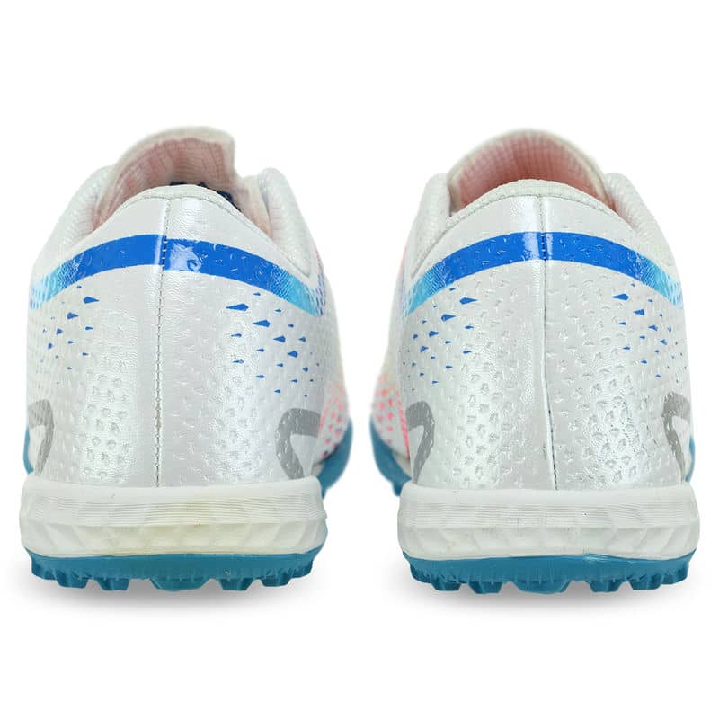 Сороконіжки виготовлені з міцного та легкого матеріалу верху – поліуретану (PU). Цей матеріал забезпечує не тільки надійний захист ноги, але й забезпечує відмінну повітропроникність, запобігаючи надмірній пітливості під час активної гри. Оснащені шнурівкою, ці футбольні сороконіжки гарантують ідеальну посадку, а анатомічна форма підтримує стопу у природному положенні протягом усього часу використання. Підошва із міцної гуми (RB) сприяє відмінному зчепленню з поверхнею поля, забезпечуючи стабільність та контроль навіть у найінтенсивніших ситуаціях.