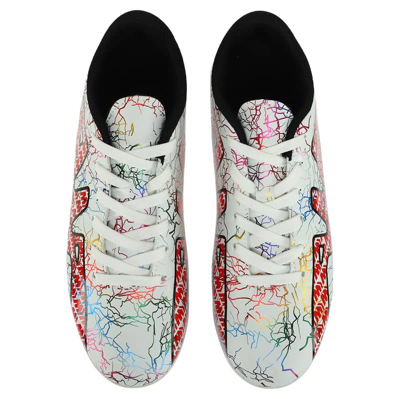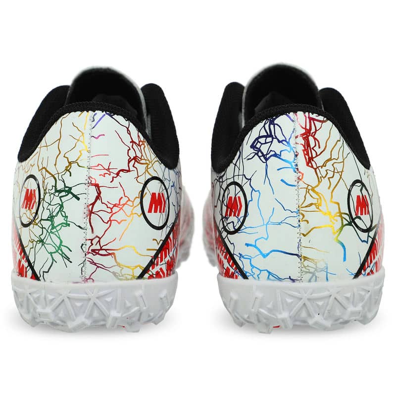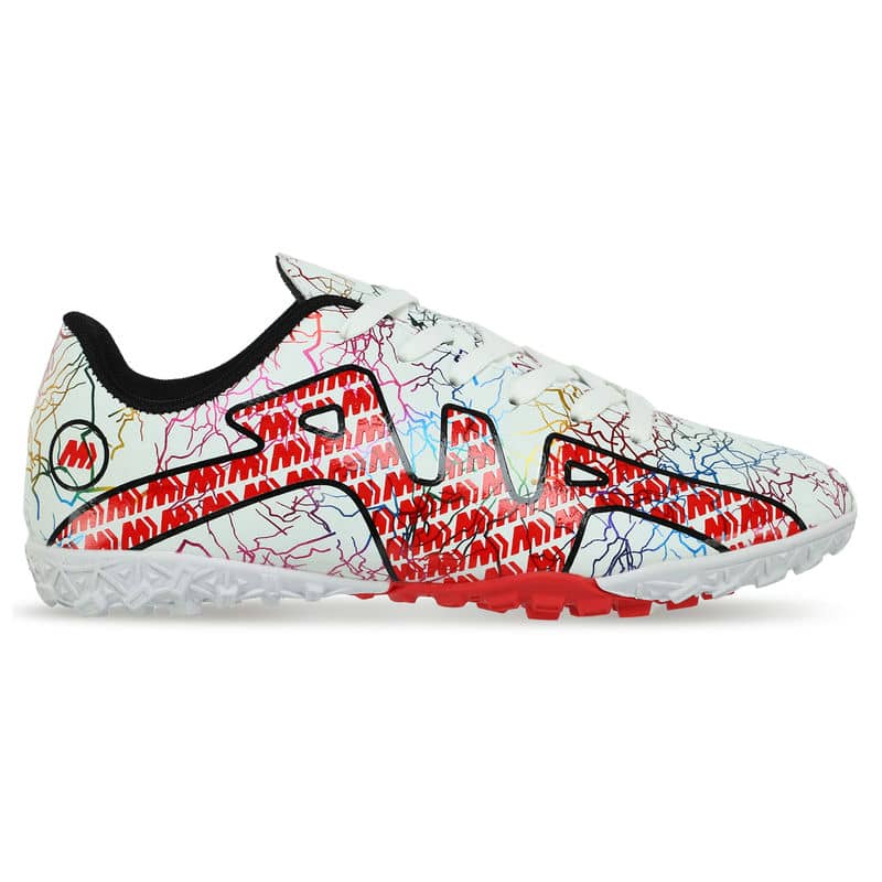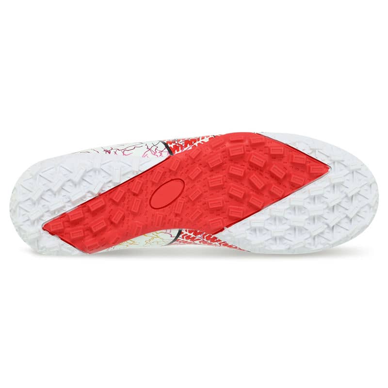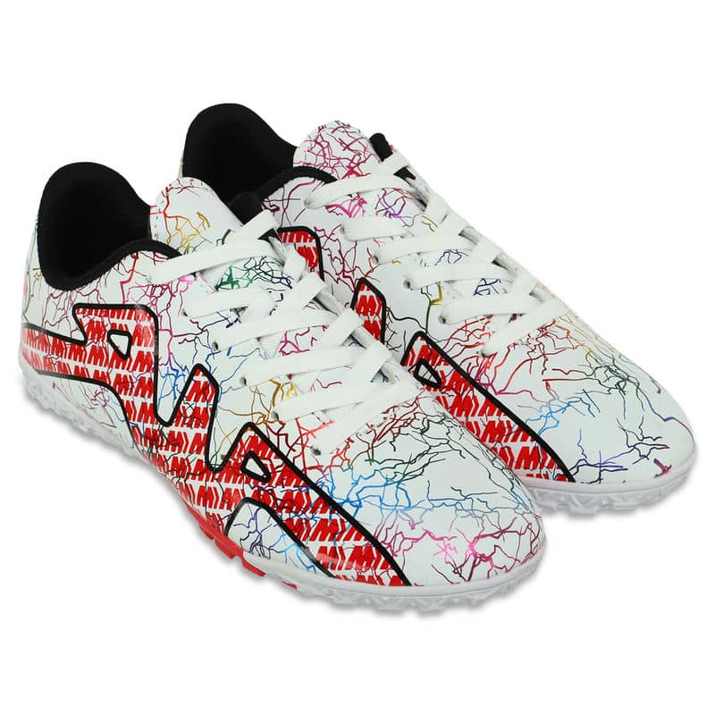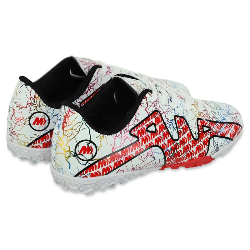 Сороконіжки виготовлені з міцного та легкого матеріалу верху – поліуретану (PU). Цей матеріал забезпечує не тільки надійний захист ноги, але й забезпечує відмінну повітропроникність, запобігаючи надмірній пітливості під час активної гри. Оснащені шнурівкою, ці футбольні сороконіжки гарантують ідеальну посадку, а анатомічна форма підтримує стопу у природному положенні протягом усього часу використання. Підошва із міцної гуми (RB) сприяє відмінному зчепленню з поверхнею поля, забезпечуючи стабільність та контроль навіть у найінтенсивніших ситуаціях.
