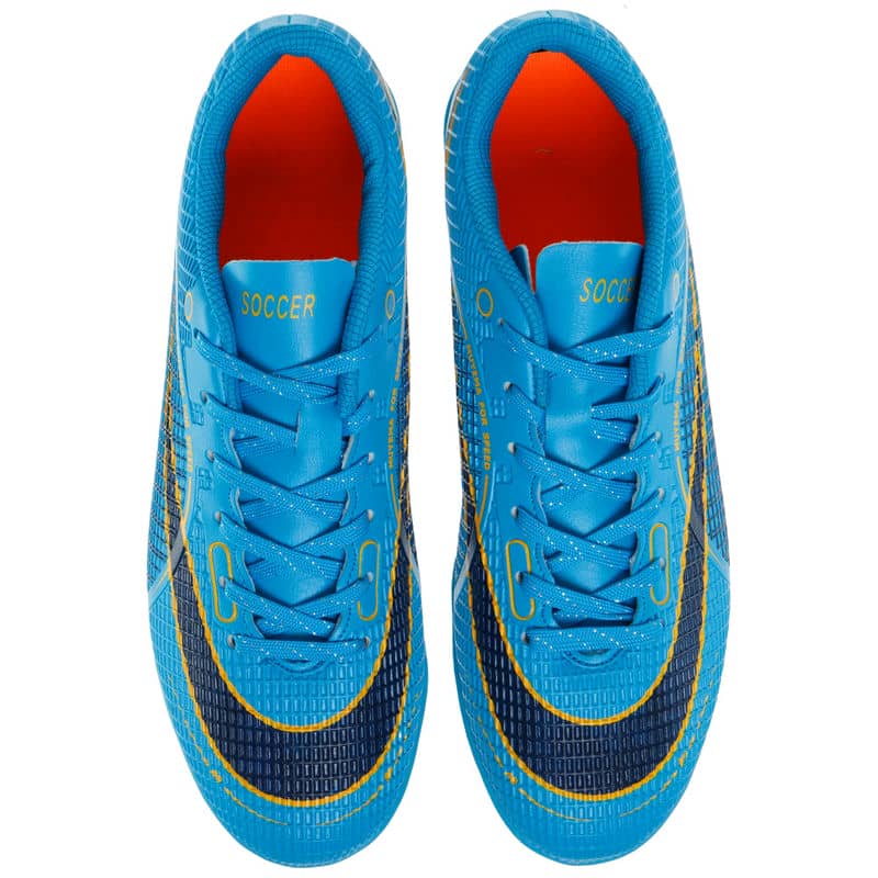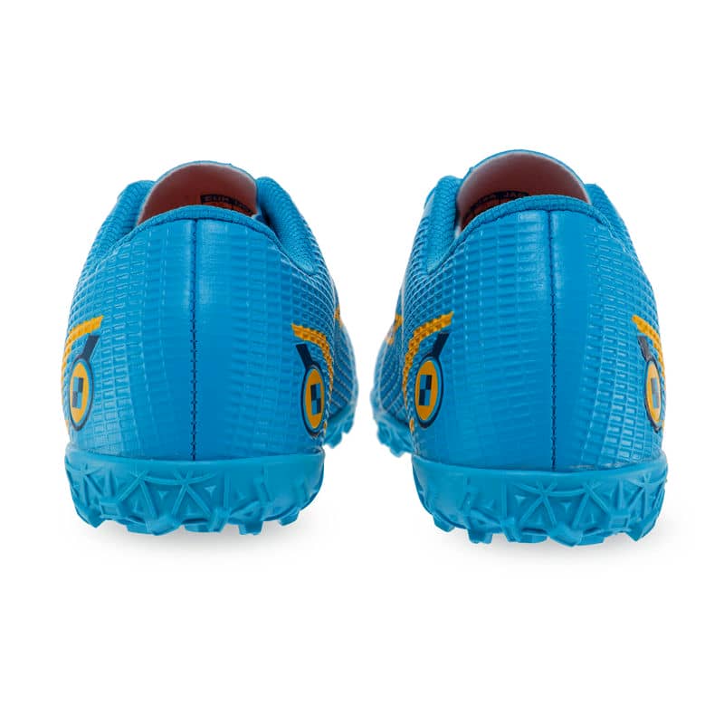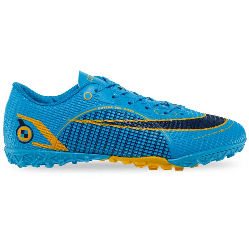 Сороконіжки виготовлені з міцного та легкого матеріалу верху – поліуретану (PU). Цей матеріал забезпечує не тільки надійний захист ноги, але й забезпечує відмінну повітропроникність, запобігаючи надмірній пітливості під час активної гри. Оснащені шнурівкою, ці футбольні сороконіжки гарантують ідеальну посадку, а анатомічна форма підтримує стопу у природному положенні протягом усього часу використання. Підошва із міцної гуми (RB) сприяє відмінному зчепленню з поверхнею поля, забезпечуючи стабільність та контроль навіть у найінтенсивніших ситуаціях.