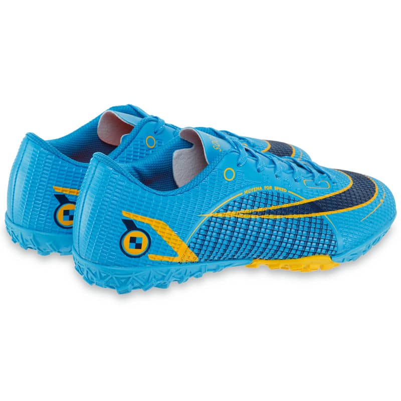 Сороконіжки виготовлені з міцного та легкого матеріалу верху – поліуретану (PU). Цей матеріал забезпечує не тільки надійний захист ноги, але й забезпечує відмінну повітропроникність, запобігаючи надмірній пітливості під час активної гри. Оснащені шнурівкою, ці футбольні сороконіжки гарантують ідеальну посадку, а анатомічна форма підтримує стопу у природному положенні протягом усього часу використання. Підошва із міцної гуми (RB) сприяє відмінному зчепленню з поверхнею поля, забезпечуючи стабільність та контроль навіть у найінтенсивніших ситуаціях.