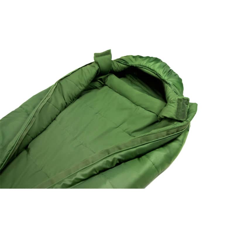 Спальний мішок «Polus 400» зроблений в формі «кокон» та призначений для використання при температурі до -20°C. Має фронтальну застібку типу «блискавка» з двома зустрічними двосторонніми замками, що дозволяє за необхідністю вентилювати спальник. Застібка захищена зсередини спеціальною утеплюючою планкою, яка запобігає проникненню холода. Капюшон утягується і регулюється шнурами з фіксатором. Додатково передбачений зсередини утеплюючий комір в районі шиї. Має внутрішню кишеню для документів. Вдосконалена система фронтальної блискавки дозволяє вилазити з спального мішка за декілька секунд. Пакується в індивідуальну компресійну упаковку.