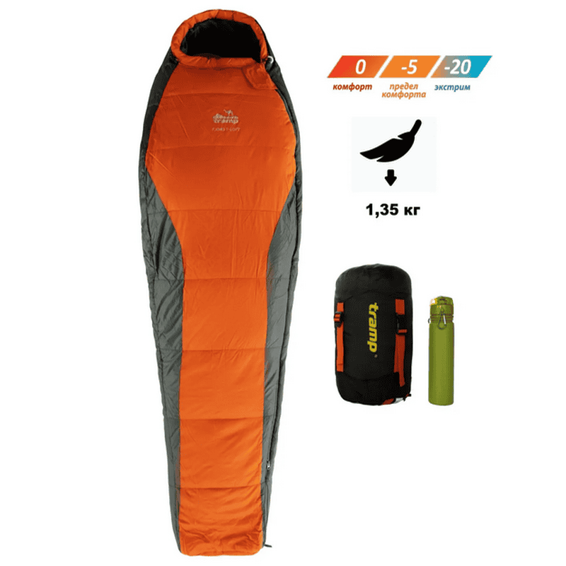Спальний мішок Tramp Fjord Regular кокон лівий orange/grey 225/80-55, код: UTRS-049R-L