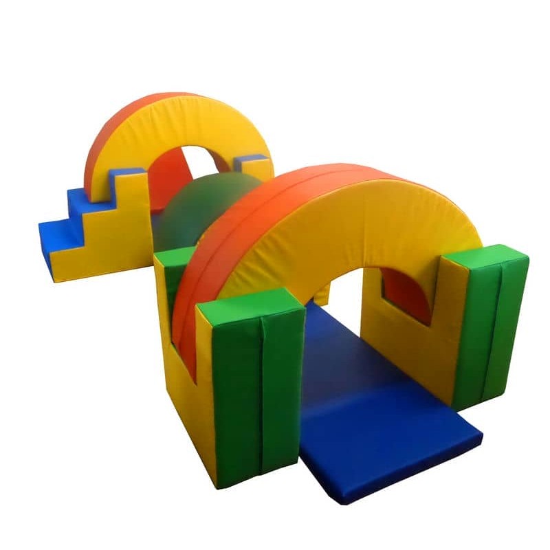 Опис: являє собою м'який спортивно-ігровий тренажер для активного фізичного розвитку дитини (балансування, перекиди, перевороти, повзання, стрибки та ін.). Призначений для колективних спортивних змагань, тренувань, навчальних програм фізичного розвитку. Безпечний для користування. Виріб є як окремої ігрової частиною, так і легко поєднується з іншими модульними конструкціями.